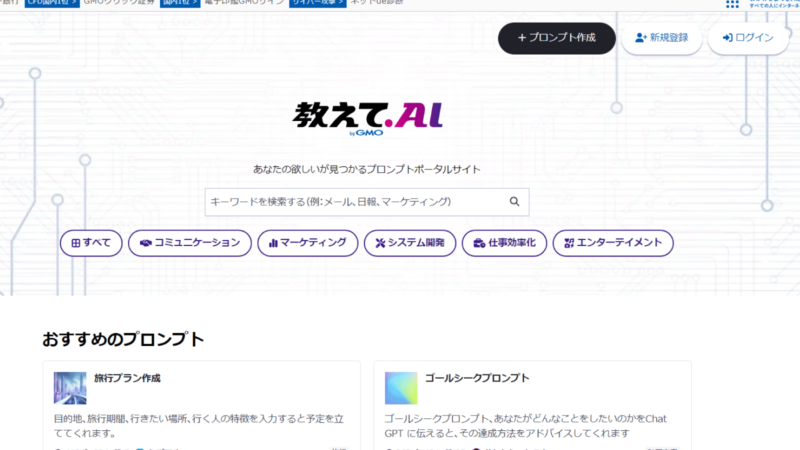 生成AIプロンプトポータルサイトです。GMO教えてAI株式会社が運営しており、文章作成のためのプロンプトに特化した完全無料のポータルサイトです。